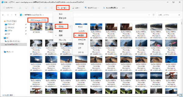 これで一部の類似画像を見つけ出せるかもしれません。ですが、画像が多い場合は時間と手間がかかります。また、Windows 10には「関連度順」で画像を並び替えることができないようですので、この方法はWindows 11のユーザのみに向いています。