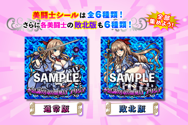 美闘士シールはクイーンズブレイド20周年記念サイトにて6枚一組で販売されます(※通常版シール6種中4枚封入 敗北版シール6種中2枚封入 絵柄は選べません 6枚中絵柄被りなし)。