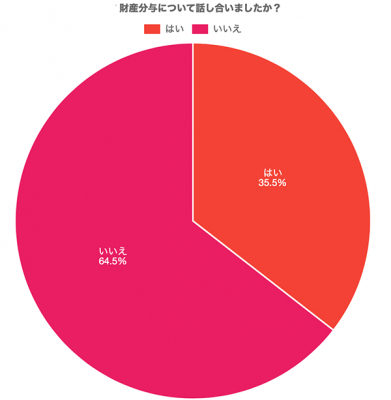 アンケート結果を見ると、約65%の方が離婚の際に財産分与の話し合いをしていないということが分かります。