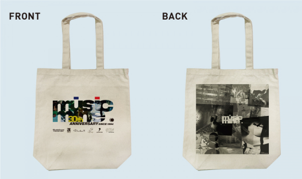 ◯返礼品:トートバッグ:クラファンの全支援者、共通となるトートバッグはMM30THのキービジュアルに、過去のアーティストのライブ写真(Photo by TAKAYUKI MISHIMA)や94年当時のフライヤーを散りばめたデザインで、バッグの材質も上質な12ozで、アナログLPを入れるの最適なサイズとし、アナログを購入する音楽ファンには、重宝する仕上がりになっている。販売予定価格3500円(税抜)