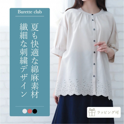 「Burette club(ビューレクラブ)」のコットンリネン刺繍ブラウスは、トレンド感を意識したカジュアルなアイテムを特徴としており、ON/OFFともに活躍できる汎用性、機能性の高いアイテムです。
