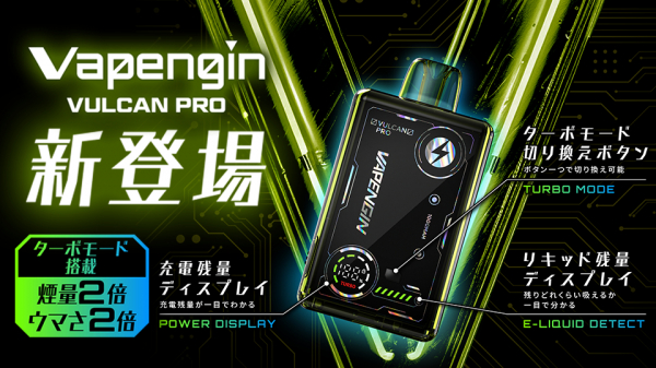 新商品の内容は、ターボ機能を搭載し2倍の味わいを実現した新型機【Vapengin VULCAN PRO(ベイプエンジン バルカンプロ)】、リキッドチャージ式でさらにコストパフォーマンスを高めた新型機【Vapengin EARTH(ベイプエンジン アース)】、Vapenginブランドの花形であり持ち運びシーシャの圧倒的定番機【Vapengin7500(ベイプエンジン7500)】から新フレーバー「グリーンアップル」の、計3商品となっています。