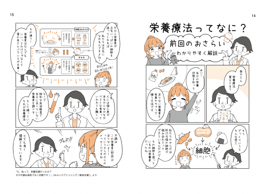 漫画やイラストを多数掲載、親子で楽しく読めるやさしい栄養本です。