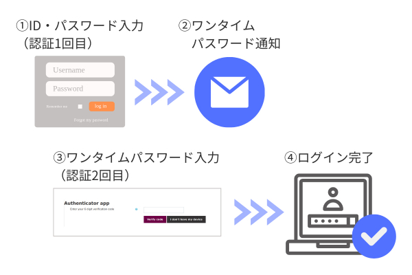 ログインをするには「ID」「パスワード」の他に、登録されているメールアドレスに届く認証コードが必要となるため、容易に不正アクセスはできなくなるでしょう。