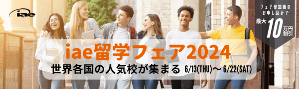 世界各国に60を超えるオフィスを展開しているグローバル留学エージェントであるiaeグローバルは、2024年6月13日(木)から6月22日(土)にかけて「iae留学フェア2024」を開催する。留学先でインターンシップや就労が可能なプログラムを提供する語学学校から世界上位にランクインする大学・大学院など、世界各国から20校以上の教育機関がオンライン形式で参加予定。