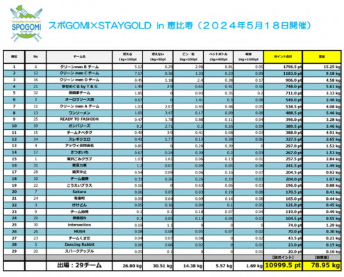「NEXT REUSE CULTURE」を経営理念とし、ブランドリユース事業を展開する株式会社STAYGOLD(本社:東京都渋谷区、代表取締役社長:柏村 淳司、以下当社)は、2024年5月18日(土)に、当社主催でクリーンイベント「スポGOMI×STAYGOLD in恵比寿」を開催いたしましたことをお知らせします。