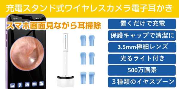 スマホ画面を見ながら耳掃除!キャップが付いて衛生的な置くだけで充電できる「充電スタンド式ワイヤレスカメラ電子耳かき」- ミスターカード株式会社