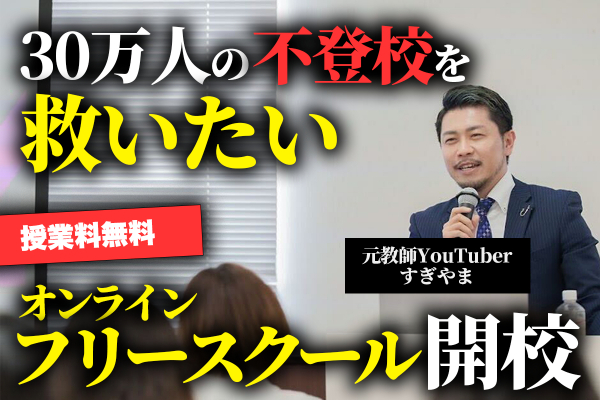 すぎやまは静岡県内で中学校教諭として10年以上に渡って教壇に立ち、その経験の中で多くの不登校生徒と向き合ってきた。