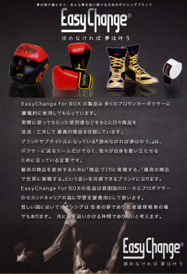 多くのプロランカーボクサーに使用され、改良にも努めています。また、ボクシングの世界における貧困差を少しでも減らし、誰もが夢を追えるようになってほしいという考えより、発展途上国ボクサーの支援や、低価格で提供できるよう取り組んでいます。