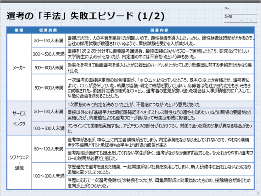 3.各社採用失敗事例(選考編<手法、運営、フォロー>)