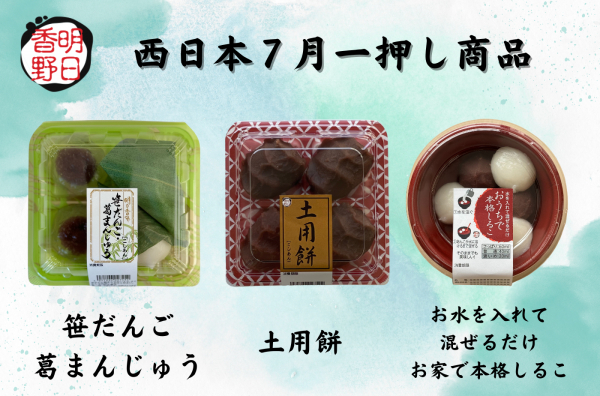 そんな明日香野から7月1日から販売を開始した東西新商品と、七夕、土用の時期にあわせた商品のご案内です。