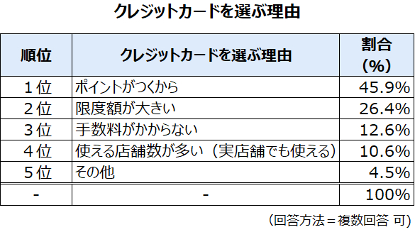 クレジットカードを選ぶ理由の第1位は、「ポイントがつくから」(45.9%)でした。