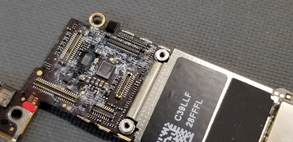 サビによる金属の腐食で回路が欠損したり、ショート時の熱により基板上のチップが焼け焦げたりした場合、重症です。基板の修理により復旧する可能性がありますが、対応可能な修理店は限られます。