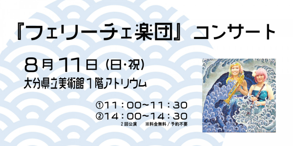 オーボエとトランペットのデュオ『フェリーチェ楽団』。大分県立美術館で開催中の「北斎と広重 冨嶽三十六景への挑戦」にあわせ、葛飾北斎の作品からイメージしたオリジナル曲を演奏します。さらにこの日限りの即興演奏『音姿〜オトスガタ〜』や世界初演となる『波龍〜Haryu〜』も披露。