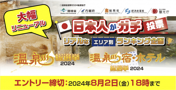 今年から大幅リニューアル!「温泉総選挙2024」「温泉宿・ホテル総選挙2024」エントリー受付開始!