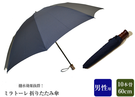 ミラトーレ生地使用折りたたみ傘『ミラトーレ』10本骨60cm 男性用
