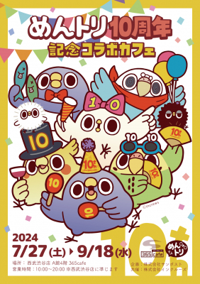 株式会社インクルーズの大人気スタンプから登場した「めんトリ」の誕生10周年を祝う「めんトリ10周年記念コラボカフェ」が西武渋谷店にて開催!