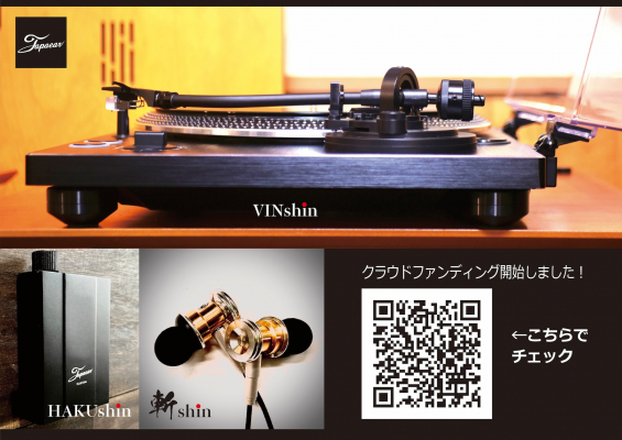 JAPAEARは本製品の開発と製造支援のため、クラウドファンディングを開始しています。「HAKUshin」先行販売や「斬shin」や「VINshin」の組み合わせによるアナログレコード再生システムをリターン品として提供予定です。