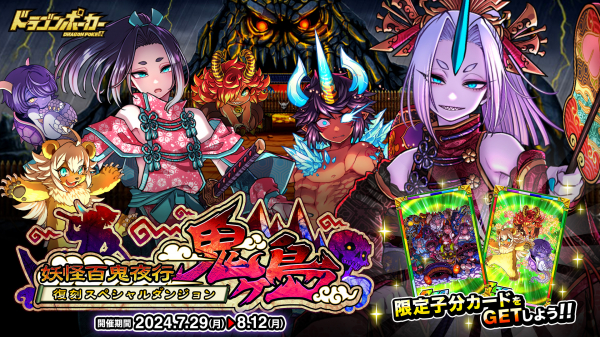 株式会社アソビズム(本社:東京都千代田区、代表取締役:大手智之)は、App Store・Google Playにて好評配信中のリアルタイム合体カードバトル『ドラゴンポーカー』で、2024年7月29日(月)より復刻スペシャルダンジョン「妖怪百鬼夜行 鬼ヶ島」を開催いたします。