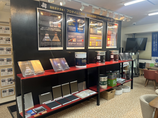 新しくオープンする「川西店」はショールーム機能を持ち、川西市を中心にデザインを重視した実績を多数提示。提案塗料や家の劣化状況をわかりやすく説明するツールもあり、塗料についての疑問にわかりやすくお答えします。※写真は豊中店の展示写真