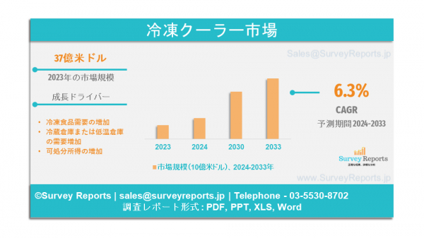 冷凍クーラーの世界市場は、2024年から2033年にかけて年平均成長率6.3%で2033年までに52億ドルに達すると予測