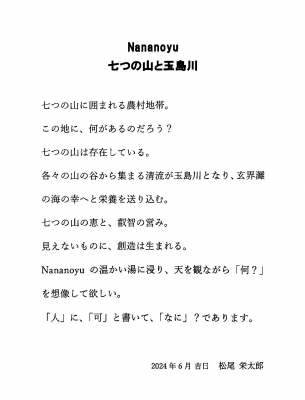 鳴神温泉 ななのゆ 世界に向けて、新ブランドロゴ制定! デザインは七山在住のアーティスト松尾栄太郎氏