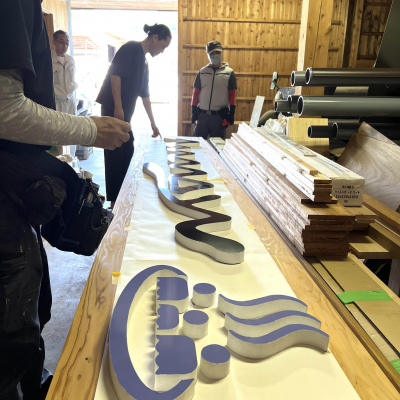 【新ロゴの看板掲示】