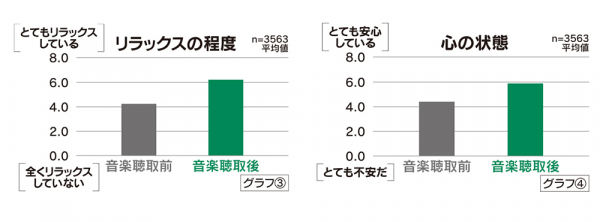 音楽聴取前が4.2だったのに対し、音楽聴取後は6.2と増加の方向を示した(グラフ3)。
