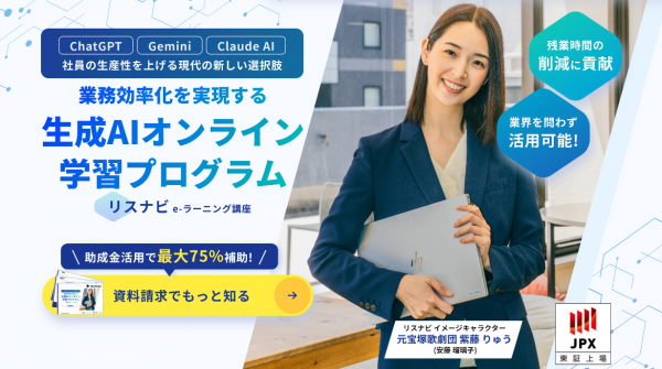 デジタルマーケティング全般にわたるスキルだけではなく、最新技術やトレンドにも迅速に対応できるスキルを習得できるプログラムや「生成AI 」の学習プログラムも提供しています。プログラム修了後も講師によるサポートを通じ、受講者が常に最新の知識を得られる環境を提供し、『リスナビ』の修了生が業界で通用するスペシャリストとして認知されるよう、高い専門性を持った人材を育成します。
