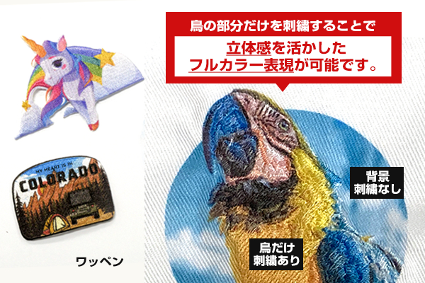 刺繍の場合、糸色の制限がある分、完全なフルカラー表現が困難でしたが、DTEカメラシステムを使用することで刺繍ならではの立体的な表現に加え、フルカラー表現が可能となります。