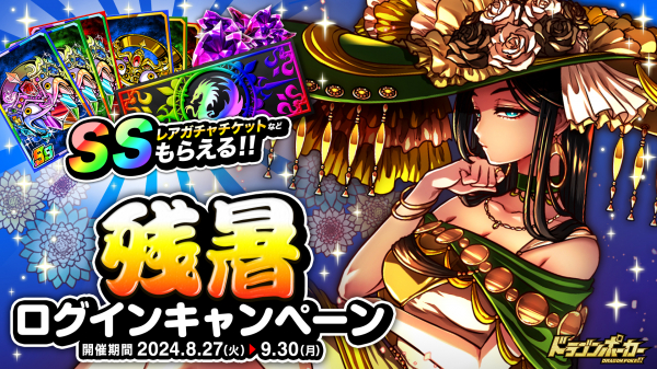 『ドラゴンポーカー』で「残暑ログインキャンペーン」を8月27日(火)より開催!ドラゴンポーカーより残暑お見舞い申し上げます。