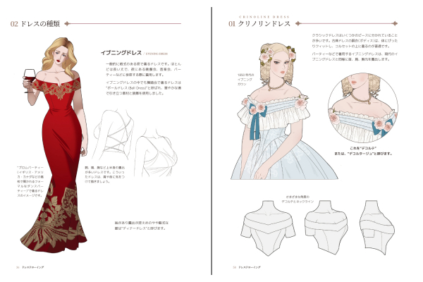 描き方によって大きく変わるドレスの「構造」「種類」「描き方」「シワのつきかた」を、わかりやすく丁寧に教えます。