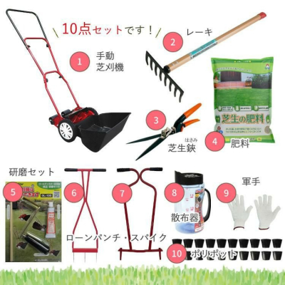 仕入れ担当スタッフが厳選した「きれいな芝生を保つ」初心者にも安心の10点セット
