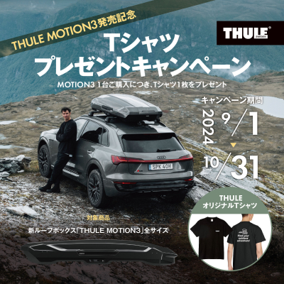 新ルーフボックス「THULE MOTION3」をお買上の方全員にオリジナルTシャツをプレゼントいたします。