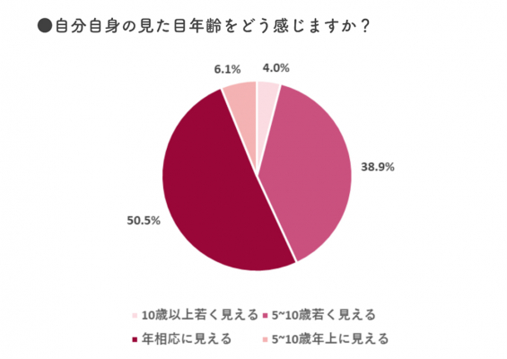 ・「5〜10歳若く見える」と回答した方は38.9%であった。