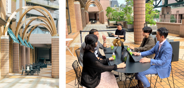 心地いい風が吹き抜けるこのテラスは、一人でも複数人での打ち合わせでも、さまざまな使い方で過ごせる自由さが魅力のスペース。職場の仲間との充実したワークタイムをご提供します。