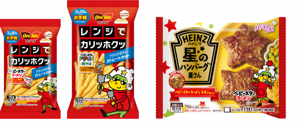 冷凍ポテトのオレアイダと冷凍ハンバーグのハインツがあのロングセラースナック菓子とコラボ!「ベビースター」監修3商品を9月より新発売