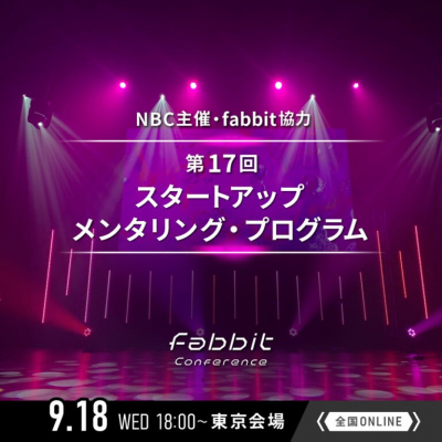 スタートアップ企業の振興と成長に寄与する一般社団法人東京ニュービジネス協議会(所在地:東京都港区赤坂、会長:井川 幸広、略称NBC)は、2024年9月18日(水)18時〜、日本最大級のコワーキングスペースを展開するfabbit協力の下、更なる成長を目指すスタートアップ企業を応援する『第17回 スタートアップ・メンタリング・プログラム』をfabbit会議室 丸の内にて開催します。