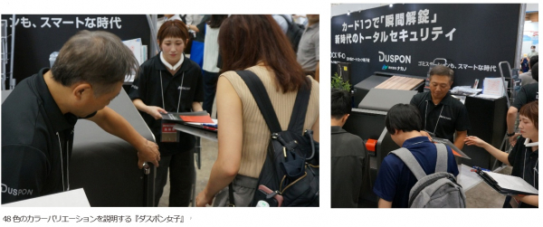 『ダスポン』の種類は 482 種類。商品にまつわる全てを知り、『ダスポン』の広告塔として働く社員が欲しいという社長の願い から、『ダスポン女子』が生まれました。初めての展示会参加で、アンケート調査や商品説明に奔走しました。ダスポンの組立も 出来ることから、製作秘話なども熱く説明しました。本人曰く、「大変だったけど楽しかった。製作する側ではなく、初めて商品を見ていただいた方々からの本音やご意見など興味深い話が聞けたので、今後の製作への参考にします。」と製作への意欲を沸かせていました。