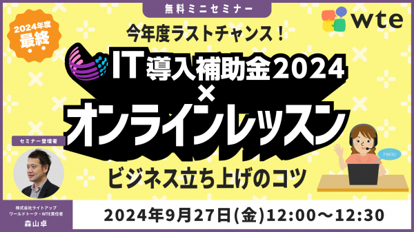 【9/27(金)】IT導入補助金2024×オンラインレッスンビジネス立ち上げの話(ライトアップ ミニセミナー)