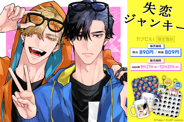 親友の「龍次郎」にこっそり片想いをしている「彗太」は彼の面影を追い求め、今日もノンケに恋をする。毎回上手くいかずに終わってしまうが、失恋の傷を癒やしてくれるのもまた龍次郎。長年拗らせた両片想いを笑いあり涙ありで描く「失恋ジャンキー」が【復刻再販】開始となります。