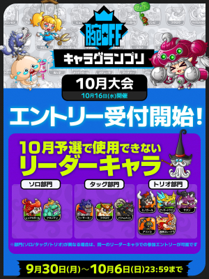 腕OFFキャラグランプリ ソロ/タッグ/トリオ10月予選