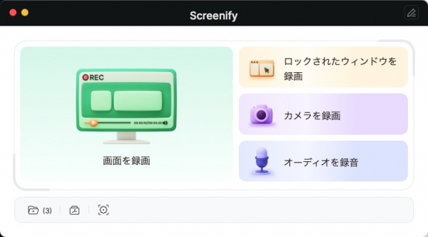 ScreenifyはWindowsもMacも対応している無料の録画ソフトで、4Kの画質をサポートし、MP4、GIF、MOVなどのビデオフォーマットをエクスポートできます。画面を録画、ロックされたウィンドウを録画、オーディオを録画、カメラを録画の4つの録画モードがあります。さらに、このフリーソフトの機能が豊富ではなく、多くの録画場合にも対応します。