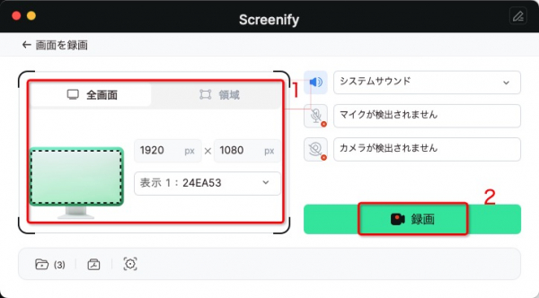 Step3、録画の領域を選択し、録画ボタンをクリックします。