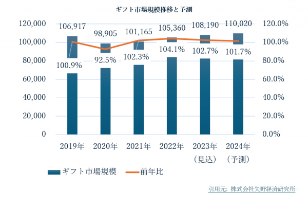 近年、EC市場における競争は激化し、他社との差別化が重要なテーマとなっています。多くの企業が、特別感やパーソナル性を強調したギフト市場に注力しており、特にカスタマイズ可能な名入れギフトの需要が急速に拡大しています。ギフト市場は2024年には約11兆円に達すると予測されており、EC事業者にとって名入れギフト化は競争力を高める大きなチャンスとなります。