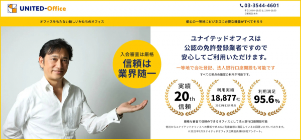 株式会社設立登記可能なユナイテッドオフィスのバーチャルオフィスは東京都心で 起業、在宅ワーク、各種法人、通販、個人事業など拠点としてまた、 地方の企業様の東京サティライト・オフィスとして、その他、サークル、組合団体 の連絡先としてもご利用いただけます。