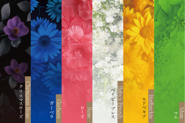 6つの花の魅力を生成AI技術で引き出し、創造性と美しさを兼ね備えた無二のデザインに昇華。