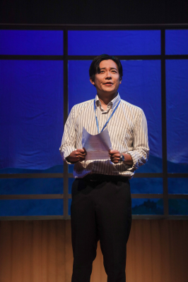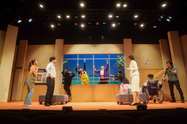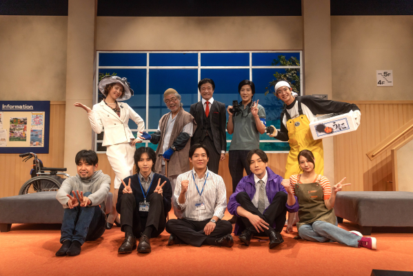 まるで吉本新喜劇を思わせるようなワンシチュエーションのワクワク感を漂わせている舞台面は、地方の公民館のロビーのような雰囲気に。