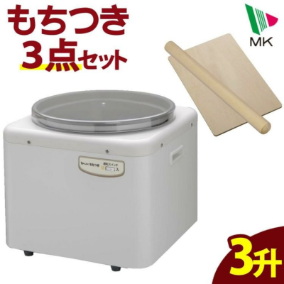 <エムケー精工 餅つき機 もちつき 全自動 3升 RM-541SZ めん棒 のし板付き 3点セット>