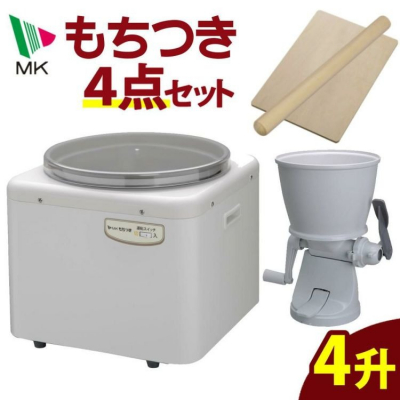 <エムケー精工 餅つき機 もちつき 全自動 4升 RM-721SZ もちカッター めん棒 のし板付き 4点セット>